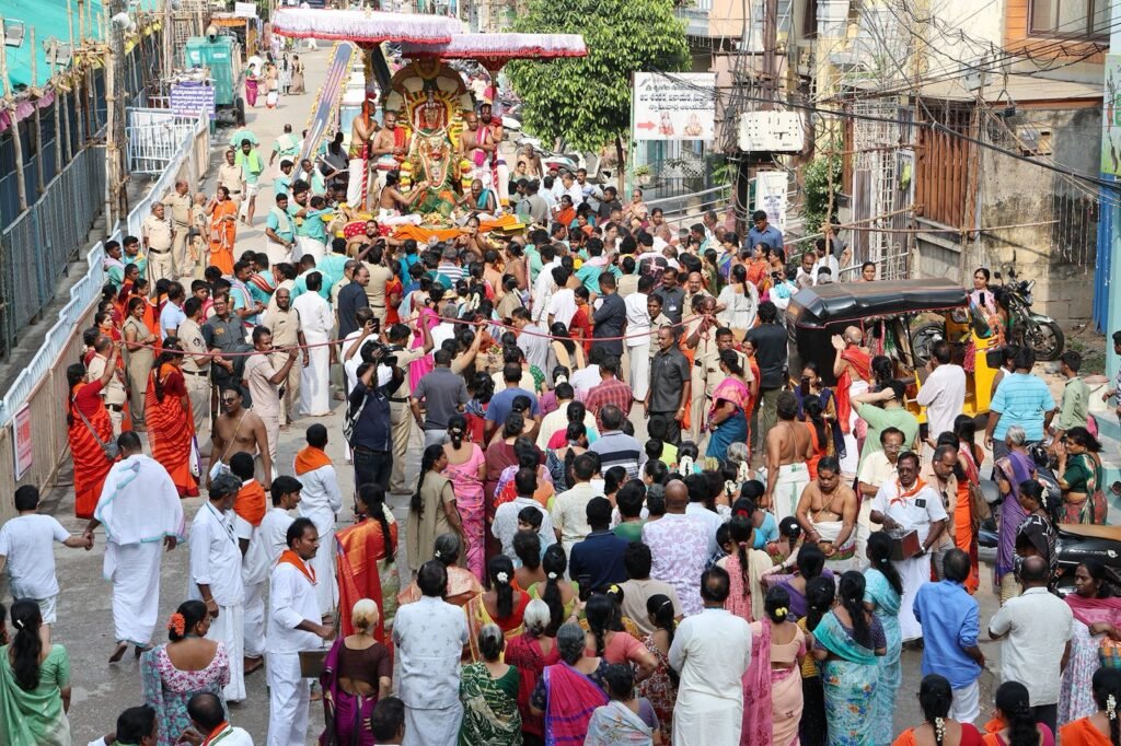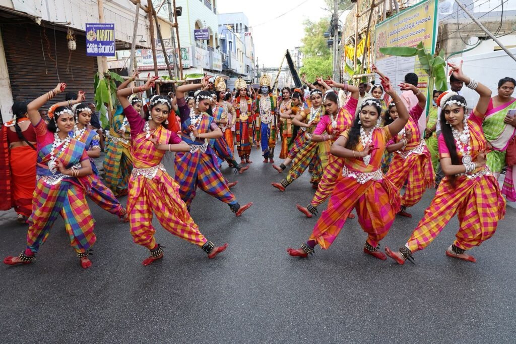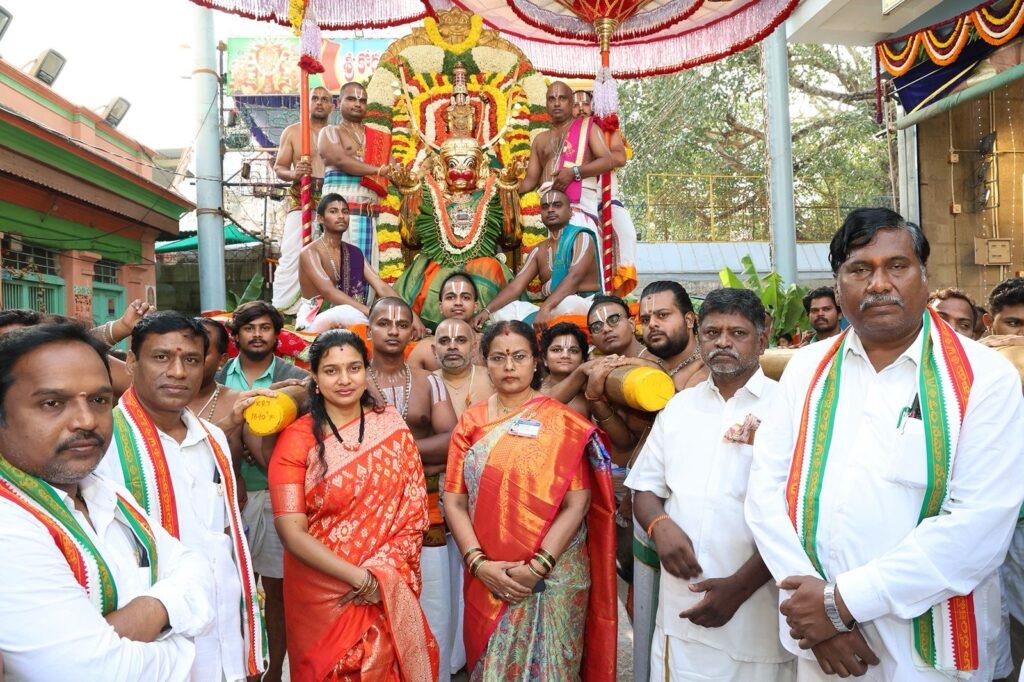 గజరాజులు, వృషభాలు, అశ్వాలు ముందు కదులుతుండగా, భజన బృందాలు కోలాటాలు ఆడుతుండగా స్వామివారు ఆలయ నాలుగు మాడవీధుల్లో విహరించారు.